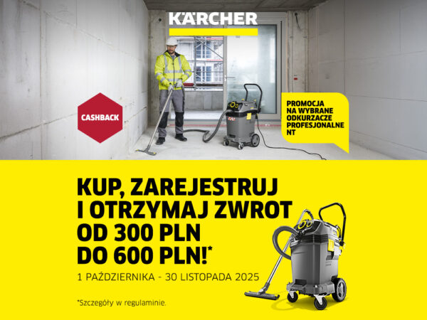 JAK WZIĄĆ UDZIAŁ W AKCJI? Dokonaj zakupu produktu objętego promocją w okresie od 1 października do 30 listopada 2025r. Zgłoś zakupione urządzenie do promocji wypełniając formularz. Po pozytywnej weryfikacji zostanie wypłacona odpowiednia premia w zależności od zakupionego produktu. Odkurzacze NT biorące udział w akcji: NT 30/1 Tact Te Adv L (numer katalogowy 1.148-281.0) CASHBACK 300,00 zł NT 30/1 […]